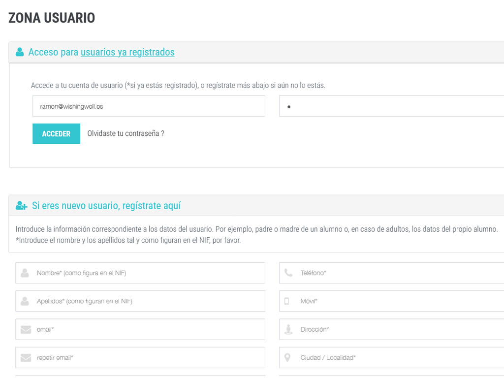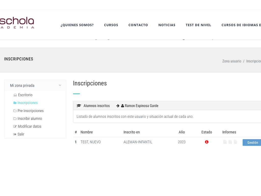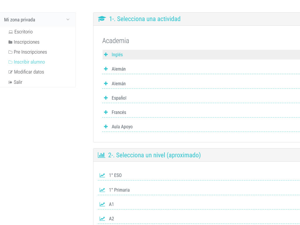 - Programación posterior de área de usuarios para inscripciones en cursos.